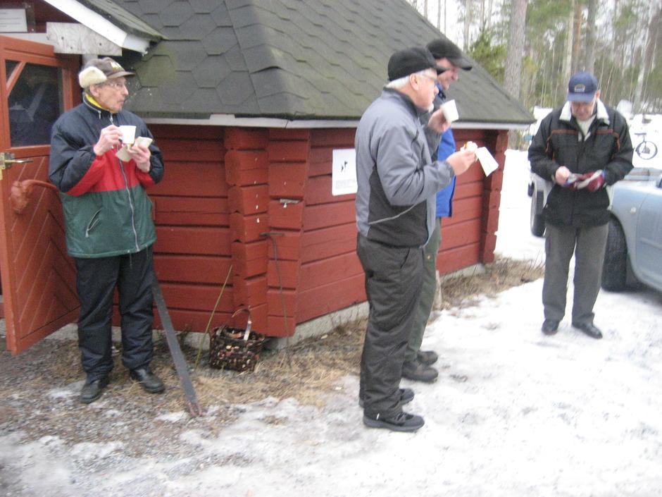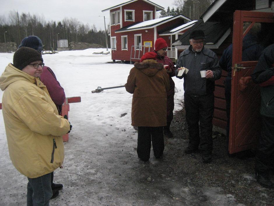 Osa porukasta paistoi kodassa makkaraa